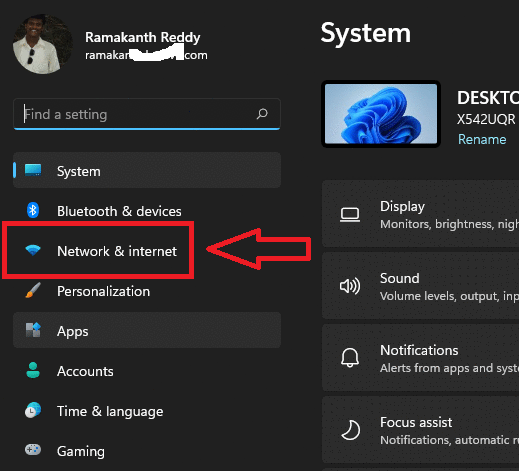 Windows ayarları uygulamasını açın ve Ağ ve İnternet'e gidin.