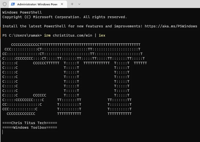 Aşağıdaki komutu PowerShell veya Windows Terminal'de yönetici olarak çalıştırın.irm christitus.com/win | iex